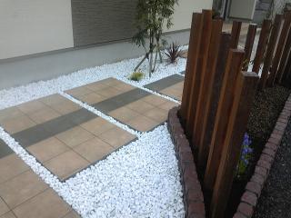 | 施工後 フロアタイルは大きな飛び石風に作り、入口と同様タイルの色を変え駐車場まで続きます。 |
