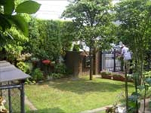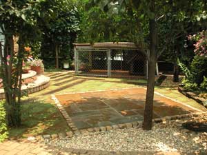 | 施工後 これで比較的陽のあたるところには芝生でそうじゃないところはテラスというゾーン分けができました。これでお庭でバーベキューもできますね。 他のテラス施工事例はこちら 他の、日陰のお庭をキレイにしたい!施工事例 |