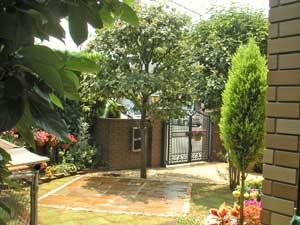 | <バーベキューもできる自然石のテラスのあるお庭> 施工前 S様のご要望 芝生敷きだった以前のお庭ですが、2度貼り換えたにもかかわらず所々はげてきてしまう。 そこで、樹木の陰になっているところは思い切って芝生をやめてテラスにしたい。 |