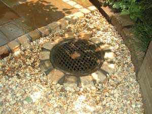 施工後 浸透マスもピンコロで縁取ればちょっとした花台として使えます。 |
