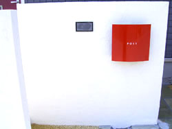施工後 玄関ドアの色に合わせてチョイスしたポスト「マノックスノブロック"ボンレッド"」。このシリーズのポストはシンプルモダンの住宅によくマッチします。 他のポスト施工事例 他の塗り壁施工事例 |