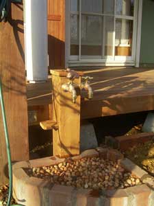 その特性をいかしてデッキの端材をつかった立水栓も作りました。 デッキ製作: 駒崎氏 |