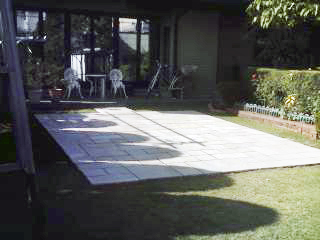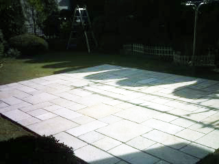 施工後 4種類の方形石を使って変化を出しました。 この場所で、バーベキューのホームパーティーも楽しそうですね。