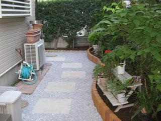 花壇を改修してスッキリとしたお庭ふじみ野市 N様邸 費用:55万円 工期:約1週間 草むしりが大変だった土の庭、レンガを立てて並べて花壇を改修、飛び石・砂利を敷いてとてもスッキリ、明るくなりました。 |