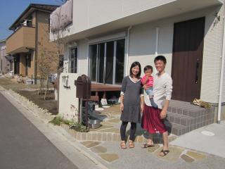 | 完成後 ご家族3人のスナップ写真です。打ち合わせ中に、お子様に手を引かれ、走り回って遊んだりと楽しい時間を過ごしました。 |