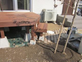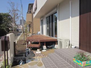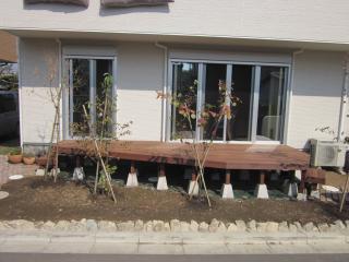 | 施工後 アイアンウッドのデッキの形はY様が描かれた形になりました。 その他のアイアンウッドデッキ施工例集はこちら アイアンウッドのご紹介はこちら |