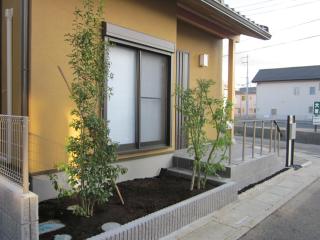 ![]() 植栽は、手前がソヨゴで赤い実が付いています。奥は和室の前なのでイロハモミジにしました。全体的に和を感じさせる建物なので相性が良いですよね。 他の植栽施工事例はこちら |