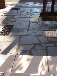 ![]() 仕上がった画像です。お打合せに時間を取り、ご主人と奥様が敷石一枚、タイル一枚にこだわりを持った完成現場です。完成後、O様ご夫婦、ご満悦の笑顔でした。 |