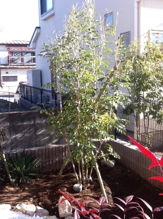 ![]() 花壇にはシマトネリコの株立ちをご提案。バランスのとれた樹形のものを選び植栽しました。このほかに、コウチワカエデも植えました。春の新芽が楽しみです。 |