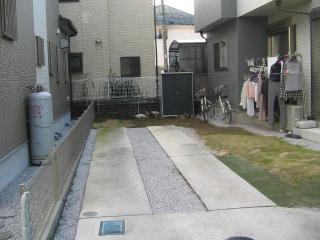 隣地とのウッドフェンス。視線をだいぶ遮りました。板の隙間は2cm、ご注文によって間隔は選べます。高さは2.3mありますが、ウッド(アイアンウッド)ですので圧迫感も軽減されています。