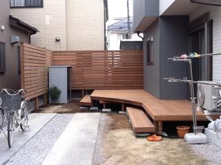 川越市 T様邸 アイアンウッドで圧迫感を軽減したフェンスと、ひな壇を付けたウッドデッキ