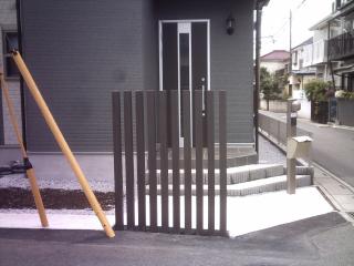T様はリピートのお客様です。こちらは2年前にスリットフェンスを施工した時の画像です。素材はタカショーのエバーアートウッド格子柱を使用。アルミ製ですので色褪せもなく、腐らないので美観が保てます。カラーバリエーションも多く、全14色の中から選べます。お施主様は「次回はウッドデッキを考えたい」とおっしゃっていました。
