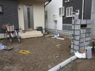 ![]() 施工開始 南側のお庭の土が足りなかったので、土入れから始まりました。 |