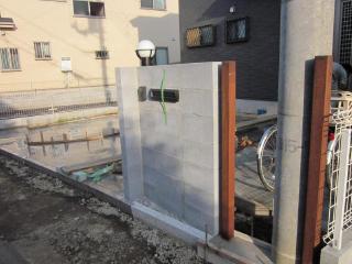 ![]() 施工中 門袖には、ポスト・門灯・表札・インターホンが付き勢ぞろい。仕上げの塗り壁はお施主様がやられるということで、完成が楽しみです。 |