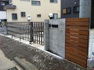 ![]() 施工中 後は伸縮門扉などの金物を取り付け、右側に板材を貼り付けて完成です。 |