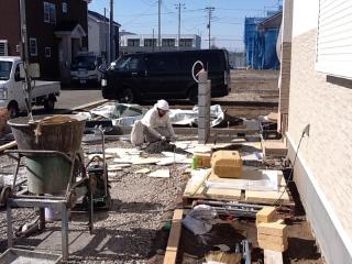 ![]() 土間コンクリートを均しているのは施工班きってのイケメン、辻松さんです。恥ずかしいから顔は写さないでとのことですので遠目から撮影しています。ブロヴァンス風のエクステリアが少しずつ完成していきます。お施主様も完成を楽しみにしています。 |