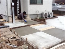 駐車場のコンクリートを打ち、金コテで平滑におさえました。