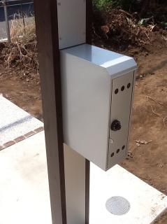 機能門柱のポストですが、意外に収納が大きいですね。セキュリティもダイヤル錠ですので安心です。