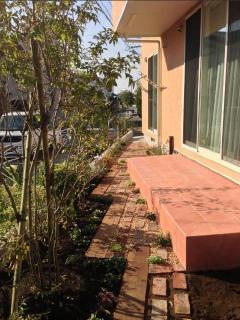 ![]() 写真右:お庭側もアンティークレンガで統一し、枕木はウリン材(アイアンウッド)の物を使用しました。これで腐る心配がありません。シンボルツリーにアオハダを植栽。ハイノキ、ジューンベリー、マホニア・コンフーサ、カシワバアジサイ、アメリカアジサイ・アナベルピンク、シルバープリペット、モッコウバラ等等植栽しました。 |