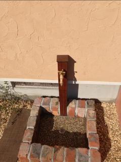 ![]() 立水栓はアイアンウッド、水受けは同材のアンティークレンガと化粧砂利の洗い出しにしました。 |