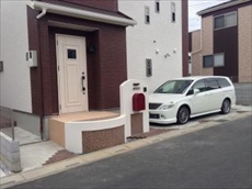 ![]() 全体的にお家の外壁(レンガ調)に合わせた落ち着いた雰囲気の外構になります。 |