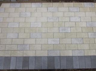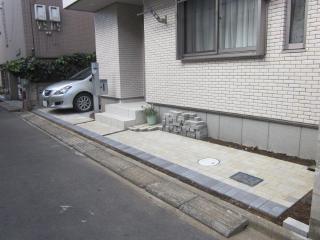![]() インターロッキングを3色使い、お施主様のご希望の配置で敷きました。 |