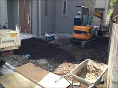 ![]() まずは、重機で余分な土を処分する作業です。 |