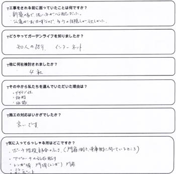 | T様、今回は施工させていただきありがとうございました。 今後ともよろしくお願いいたします。 |