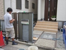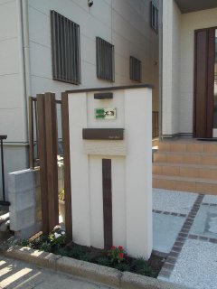 ![]() 門柱のポストです。ディーズガーデンの埋め込みポスト・デューンUを取り付けました。多種のポストの中から選択して取り付けました。ポストによって門柱のデザインが決まるので大事なパーツの一つです。今回はこげ茶色のスクエアタイルを貼りさらにグレードアップを試みました。塗り壁も凹凸にし奥行の変化を演出いたしました。 他の、ポスト設置例のご紹介はこちら |
