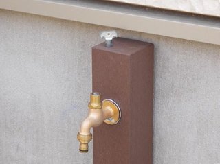 ![]() 蛇口は真鍮色。後々よい風合いのブロンズ色に変化いたします。立水栓が道路側に面しているので蛇口のハンドルを取り外しできる商品をご提案しました。 他の、立水栓設置例のご紹介はこちら 立水栓紹介ページ |