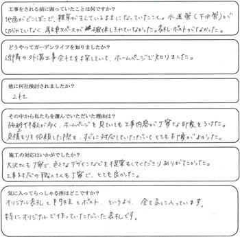 | K様 今回は施工させてくださりありがとうございました。 またこれからも宜しくお願いいたします。 |