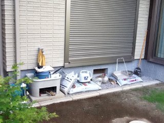 ![]() 画像中ほどに、グレーチング(排水用蓋)を使用しました。理由はお家の基礎内に通風口があるためタイルとお家の基礎を分離せざるを得なくなり、その隙間にステンレス製のグレーチングを設置いたしました。こちらの製品は最近出来た部材でこうった通風口の場合、必需品となりました。 |