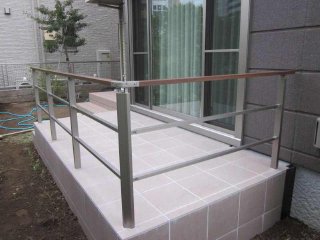![]() 手すりは奥様からのご要望です。お孫さんが遊びにいらした時の危険防止(横桟バー材2段使用)と、お布団干しにということで設置いたしました。手すり部材はLIXILのアーキレールの商品です。スタイリッシュなデザインで人気商品の一つです。 |