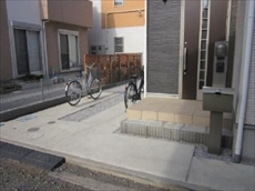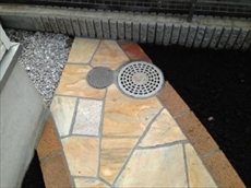 ![]() 玄関側が完成しました。乱形石をきれいに貼り終え、奥側の砂利だったところも車を止められるようにコンクリートで仕上げました。 |