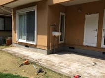 ![]() 写真は既存のデッキの解体撤去が終了したところです。 |