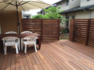 ![]() デッキはとても広いので、テーブルセットやパラソルもゆとりで置けます。もう一つのお部屋が完成しましたね。 |