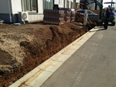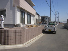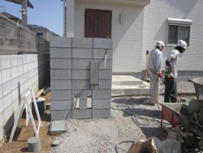 | 施行中の様子です。 | まずは化粧ブロックを積む基礎の部分の掘削します。 | エスビック ウルトラC 150タイプ(化粧ブロック)を積みました。 |