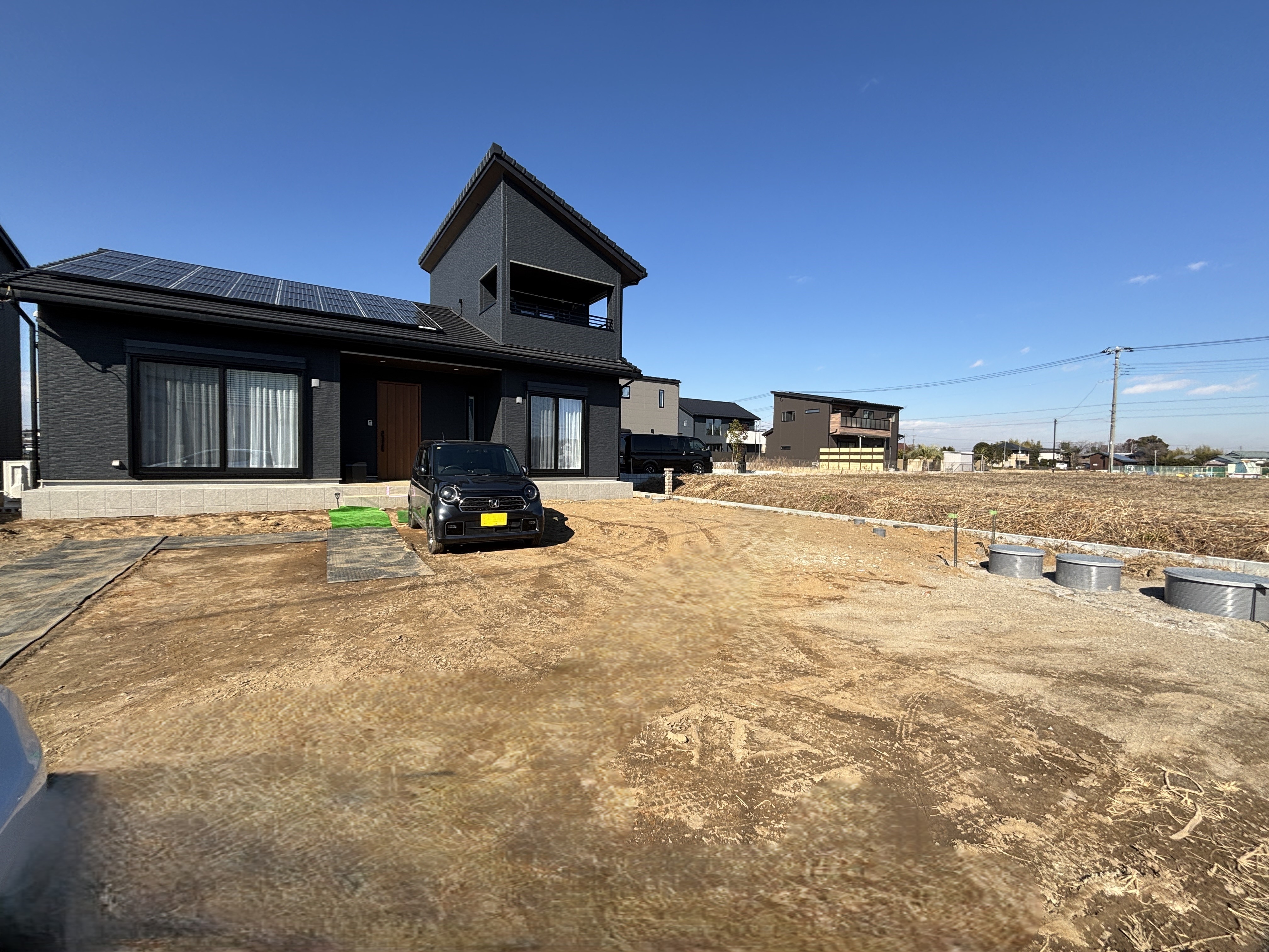 | キレイに土間コンクリートが 仕上がりました♪ こちらに4台分の転回できる カースペースを確保しました(●'◡'●) |