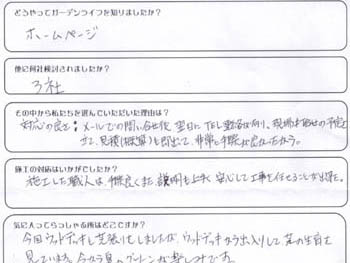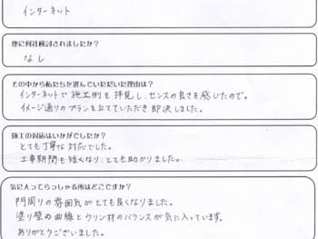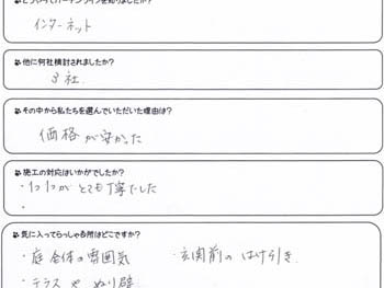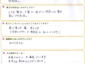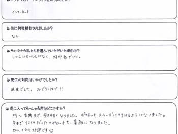 職人は、手際よくまた説明も上手く、安心して工事を任せることができました。
