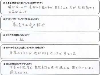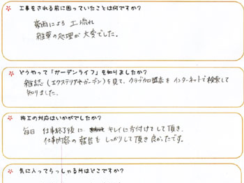 庭づくりの第一歩が、とても素敵に仕上がり、嬉しく思っています。