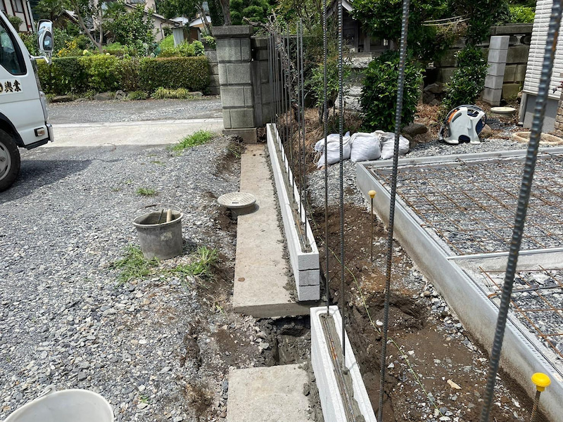 家側にコンクリートのテラス(途中)