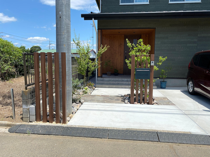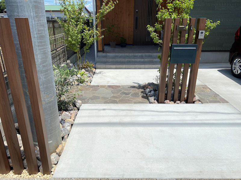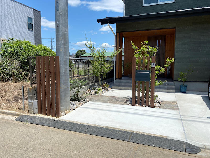 木と緑で、ナチュラルな玄関前になりましたね(^^)/