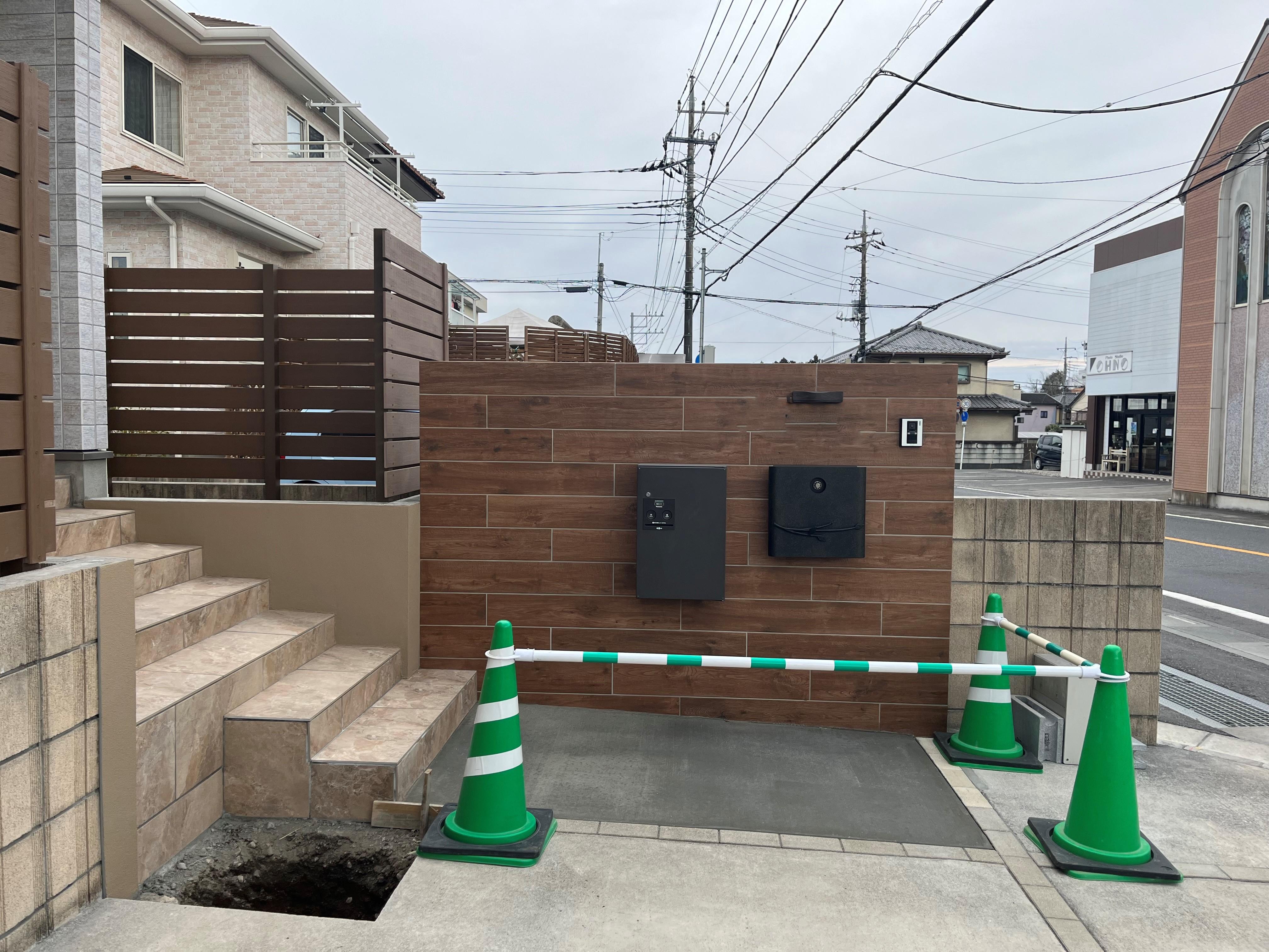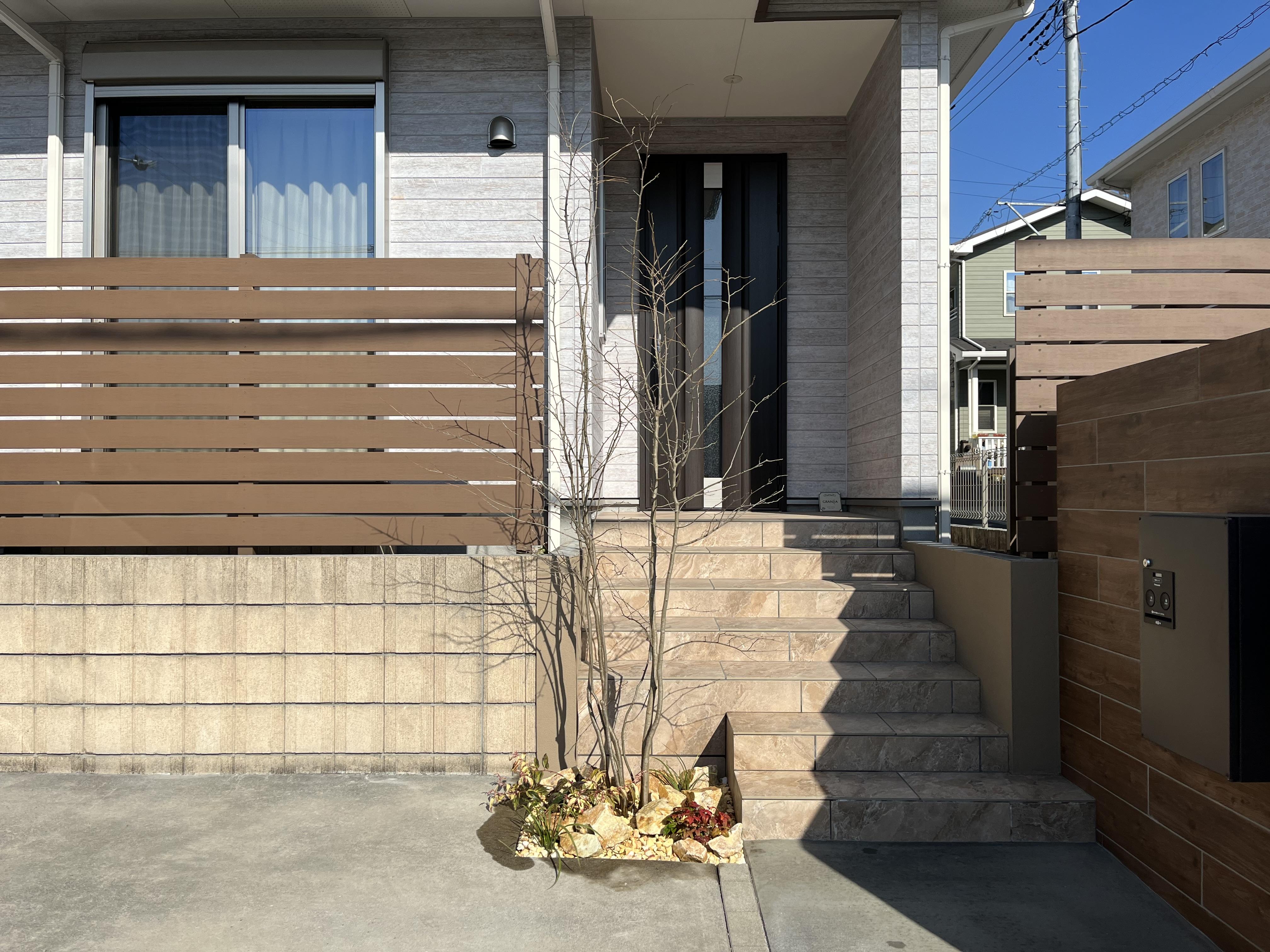 木目調のタイルの門袖