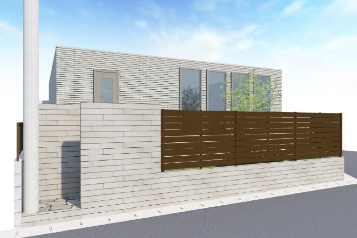 フェンスは木調の耐候性樹脂フェンスなので経年変化がしにくくおすすめです