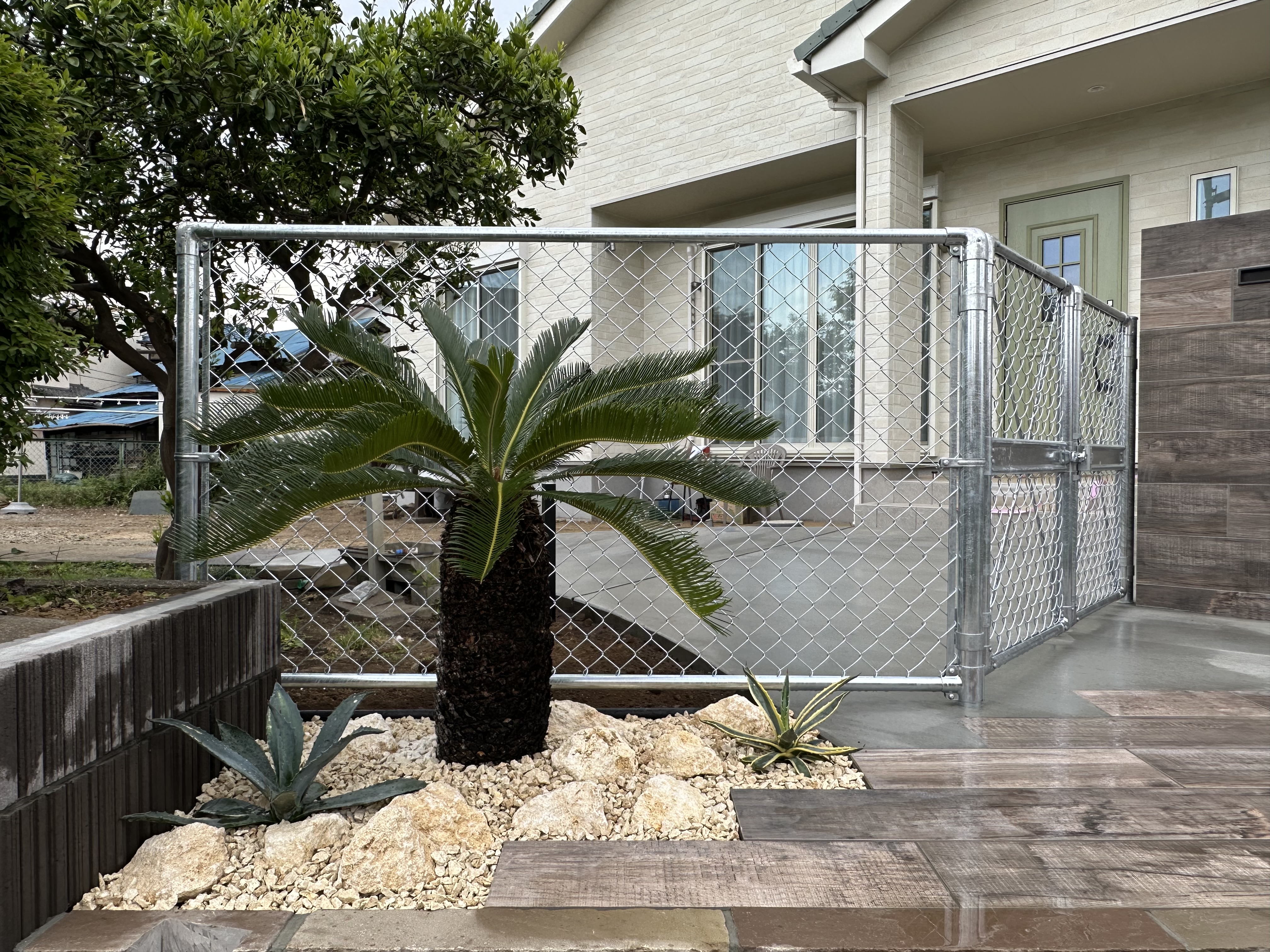 植物はソテツとアガベのみで配置し、手間も掛からずシンプルにまとまりました