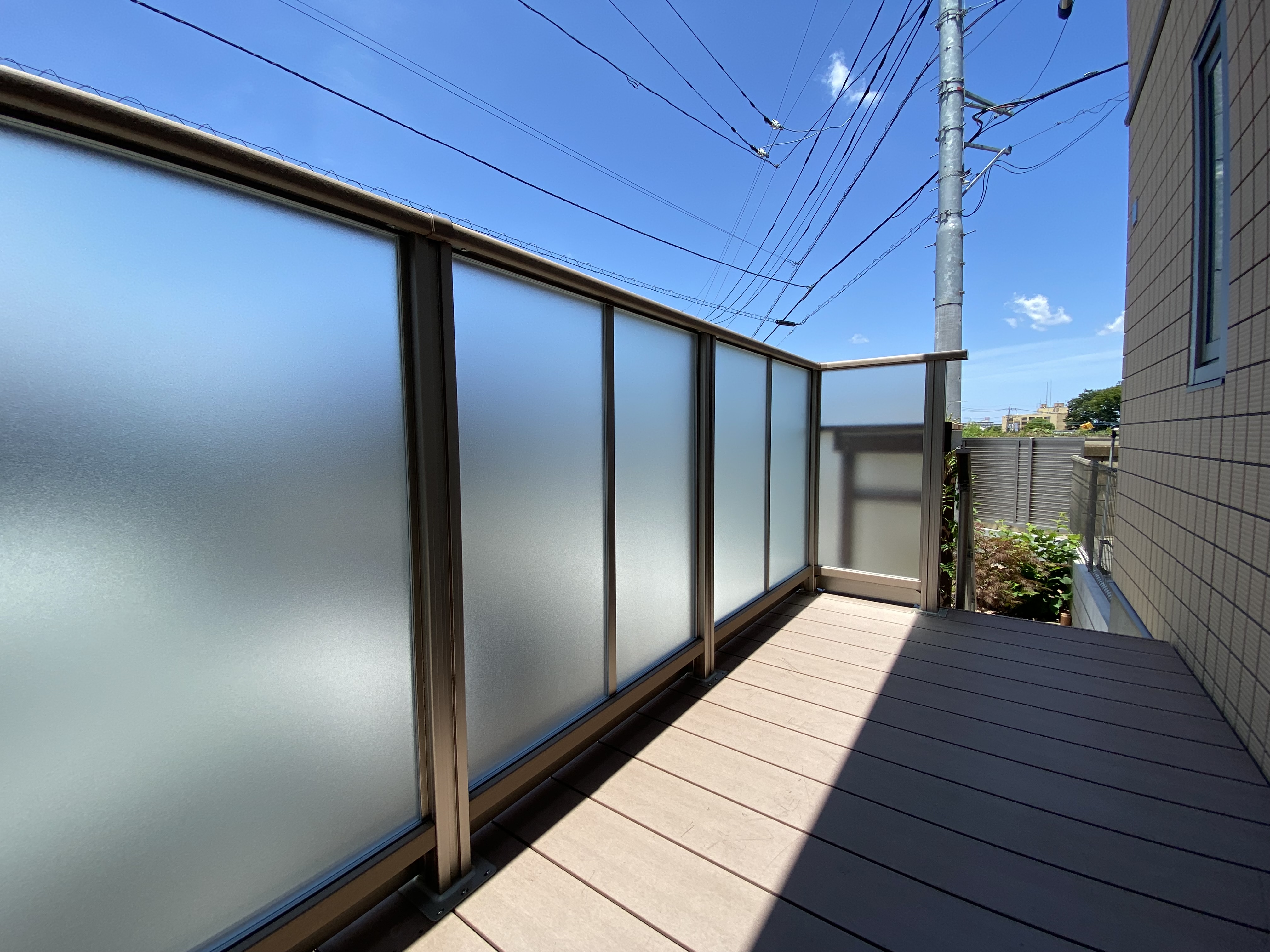 ご新築時に取付けた人工木デッキにフェンスを付てたものの、道路からの通行人や車の行き来に