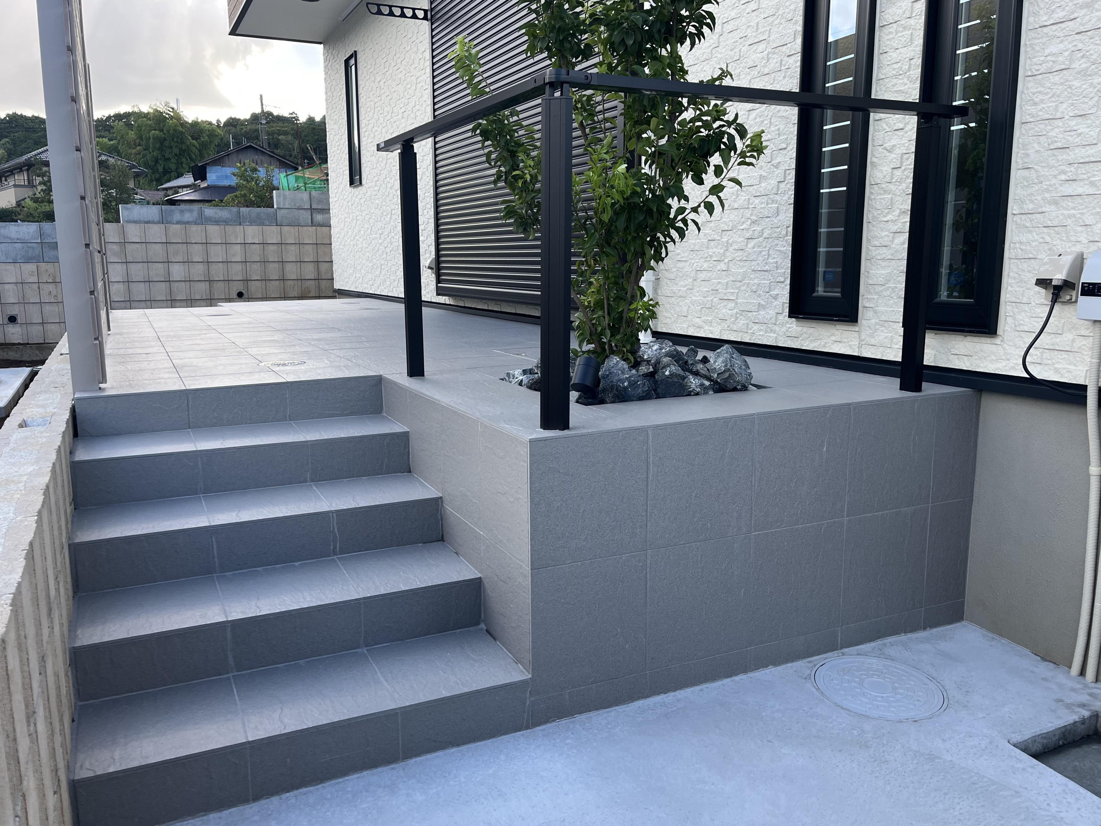 お庭にタイルテラス