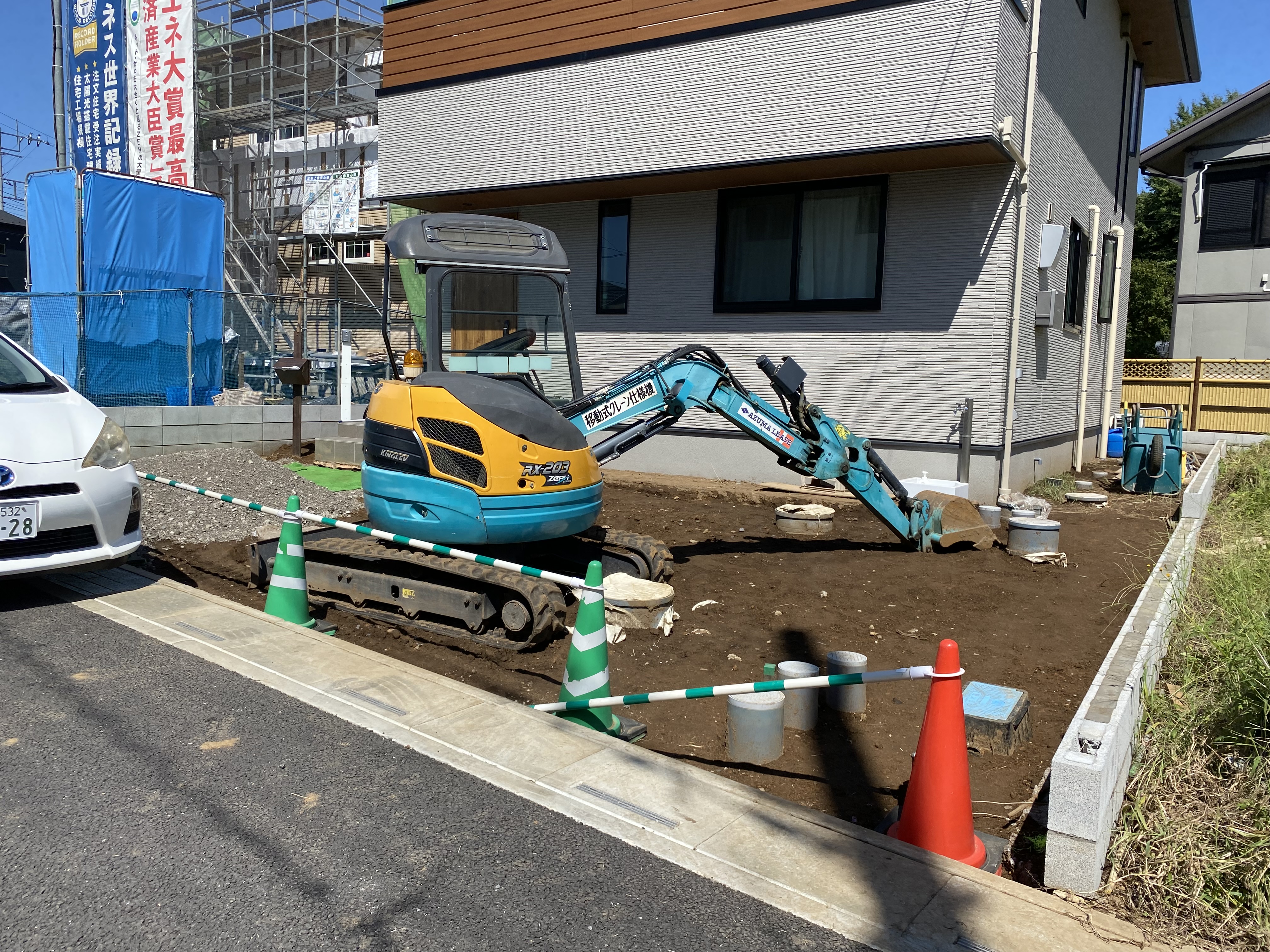 まず位置だしの打合せをし重機による掘削・路盤工となります。