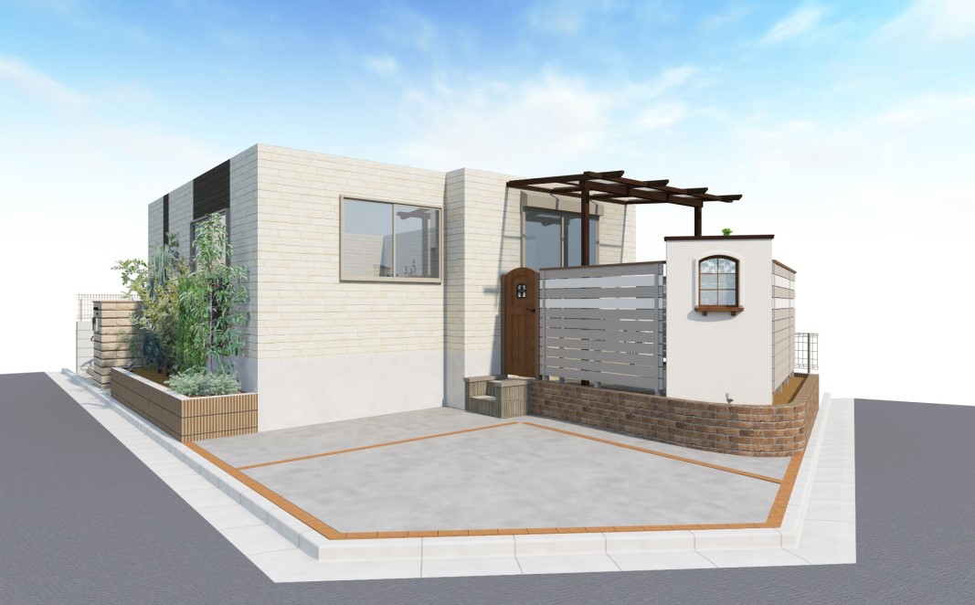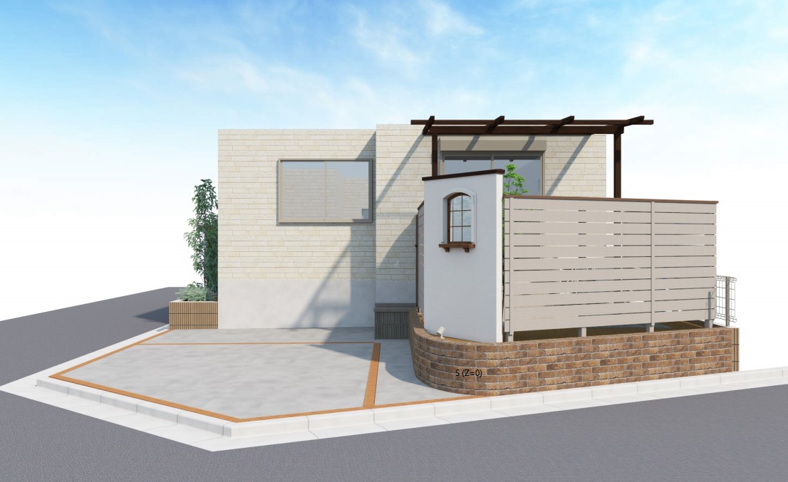 今までは道路から丸見えだったお庭をディーズガーデンのアルファウッドフェンス・