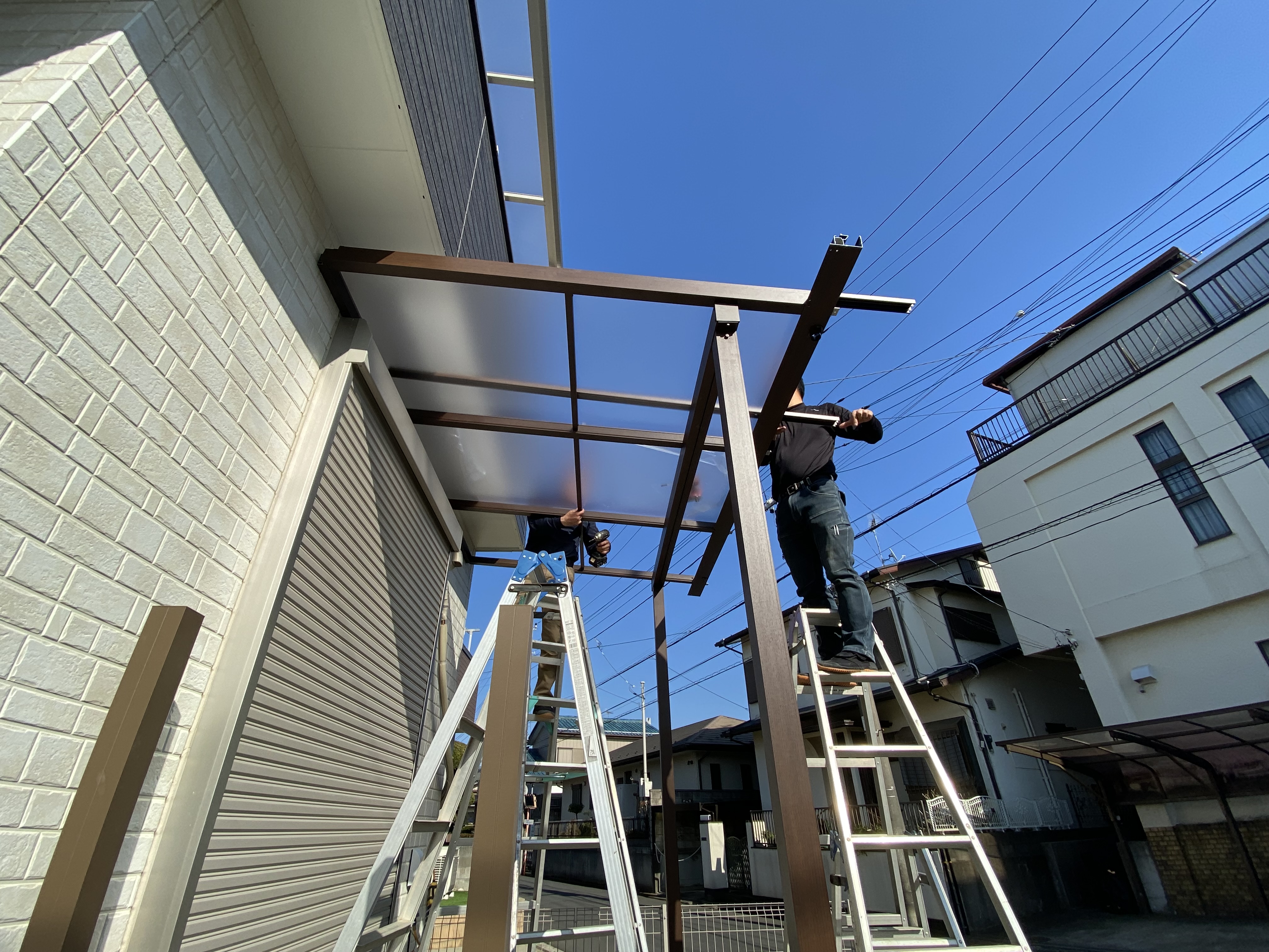 お庭の雨除けとしてパーゴラ風テラス屋根を設置しました。
